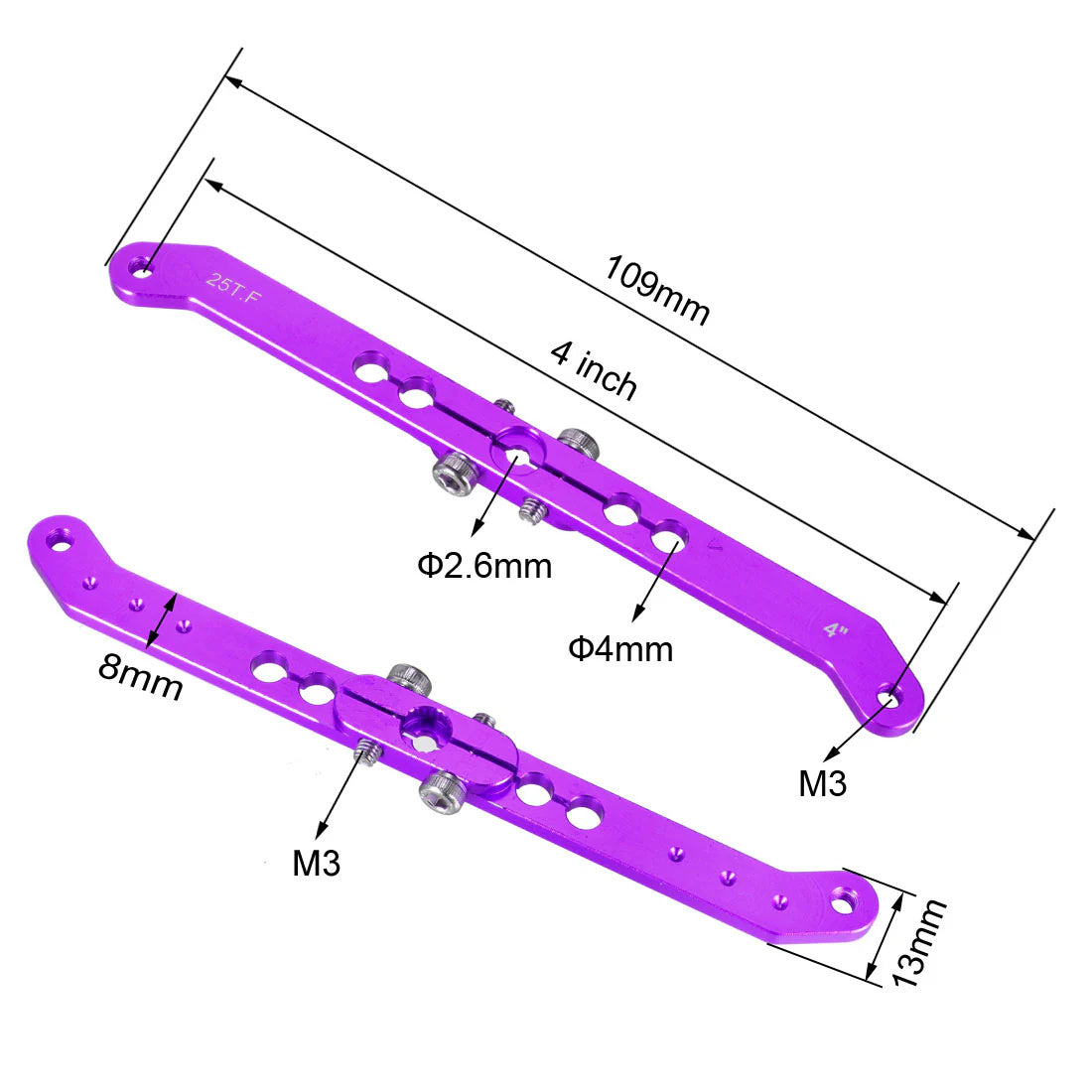 2 sided 4" Offset HD Servo arm 3MM Purple 25 tooth Futaba style