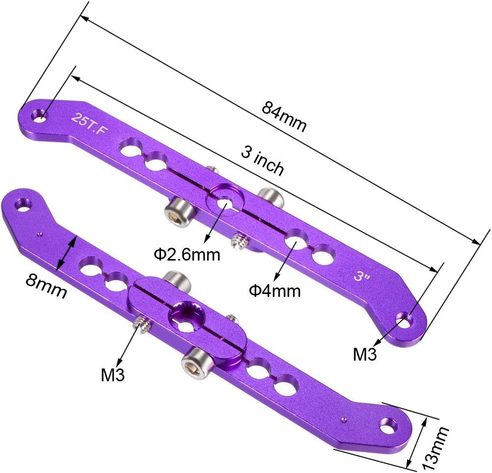 Aluminum Servo Arms Offset Double Arm 25T M3 Thread Purple, for 3 Inch Futaba. 25 tooth spline, alloy body makes it work better than plastic ones, stronger and solid.