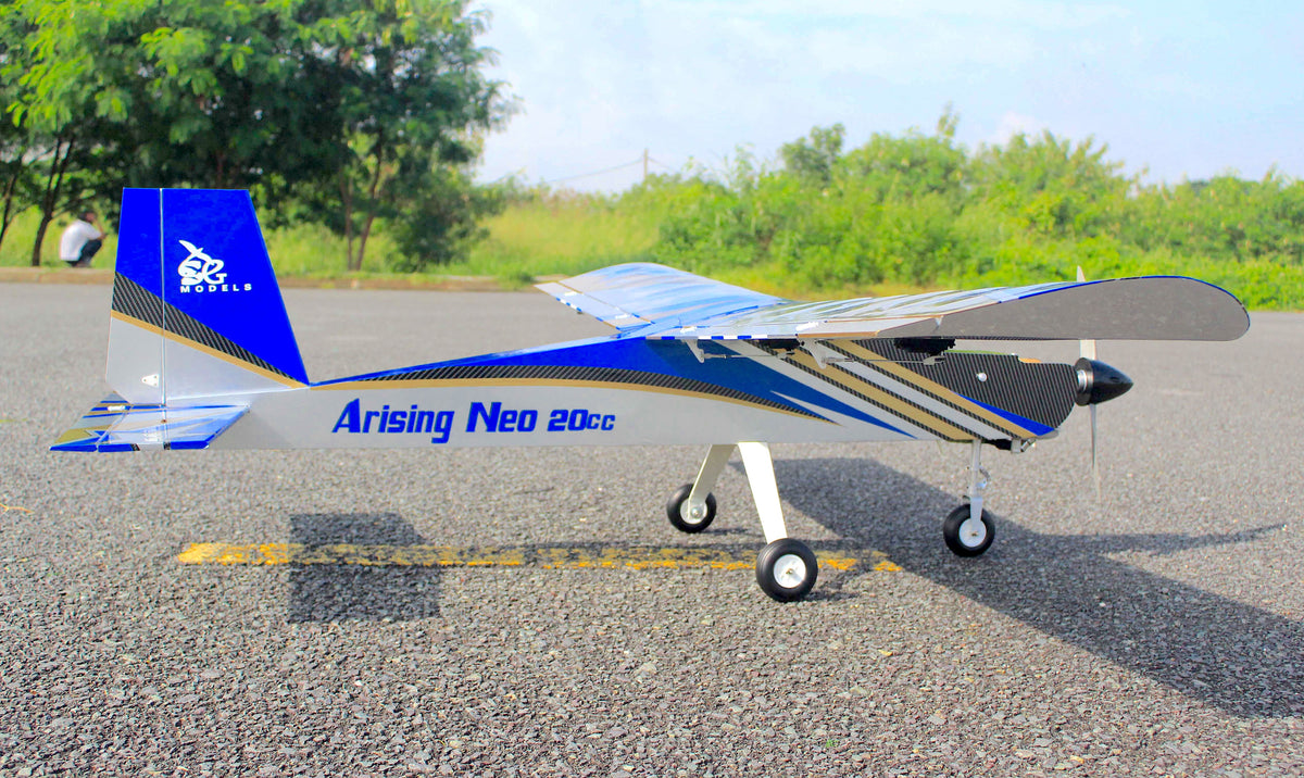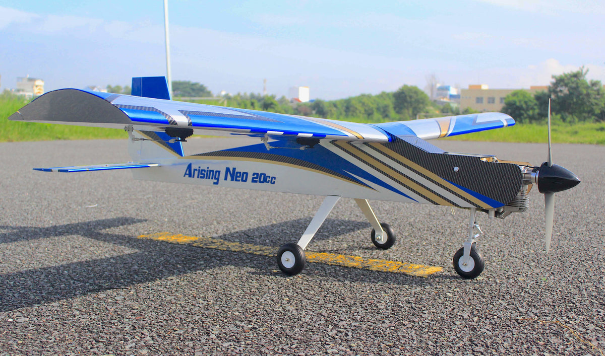 A perfect blend of performance, stability, and simplicity, this 74" high-wing trainer offers a truly relaxing and rewarding flying experience. Optimized for 20cc gas engines, this ARF (Almost Ready to Fly) model combines modern convenience with cost-effective operation. Its lightweight balsa and plywood construction delivers a strong yet agile airframe, factory-covered in vivid heat-shrink film that ensures both visibility and style in the air. With its generous wing area and semi-symmetrical airfoil, the Arising Neo provides smooth, self-correcting flight characteristics that make it ideal for learning, slow approaches, and relaxed cruising.