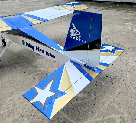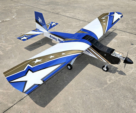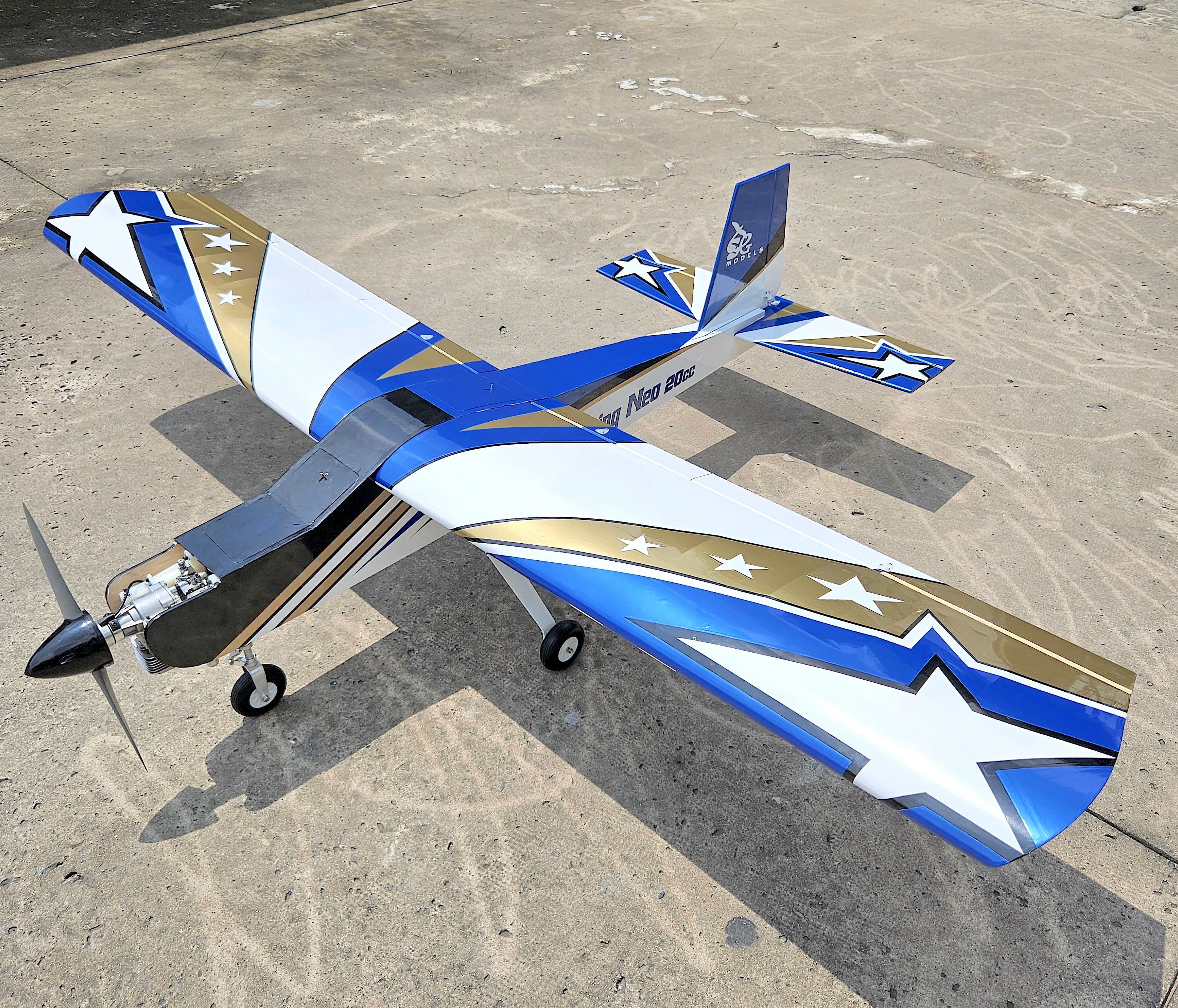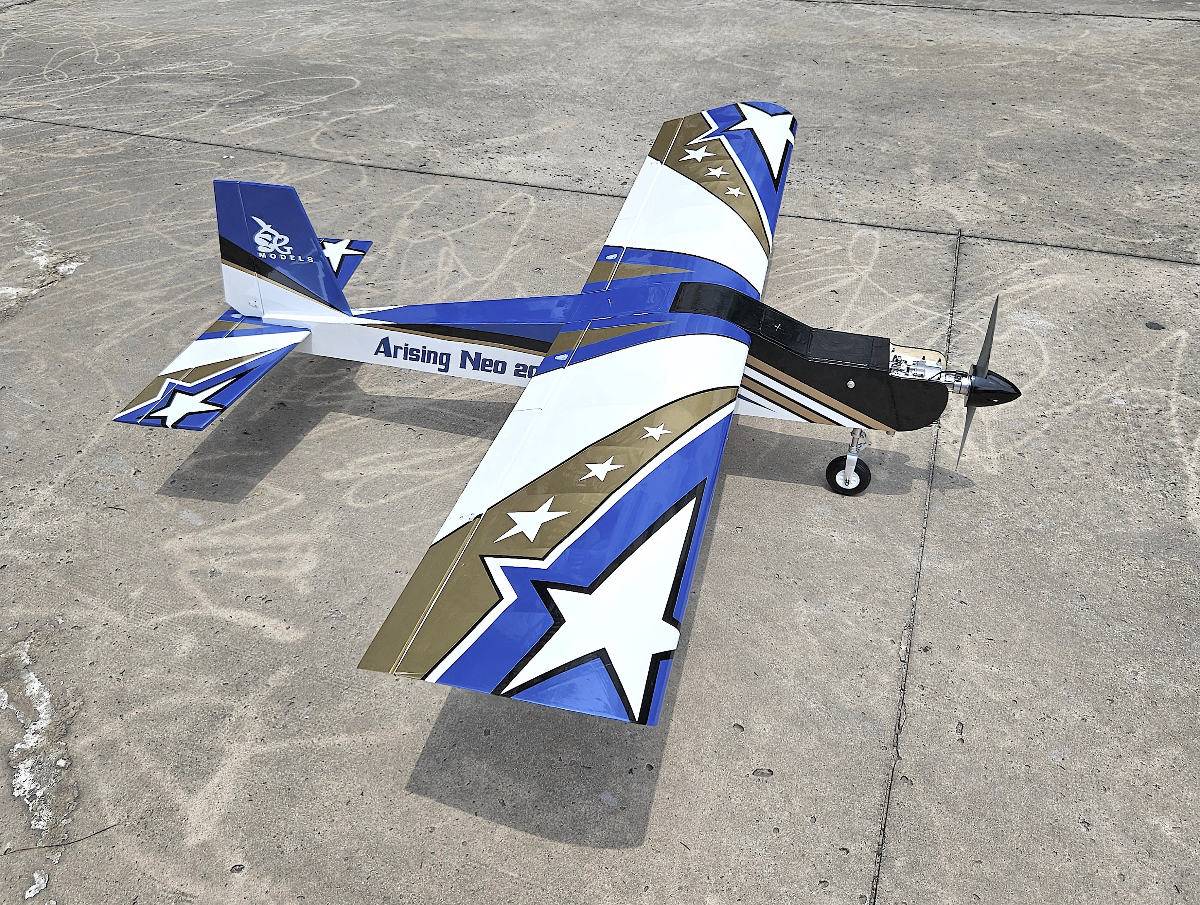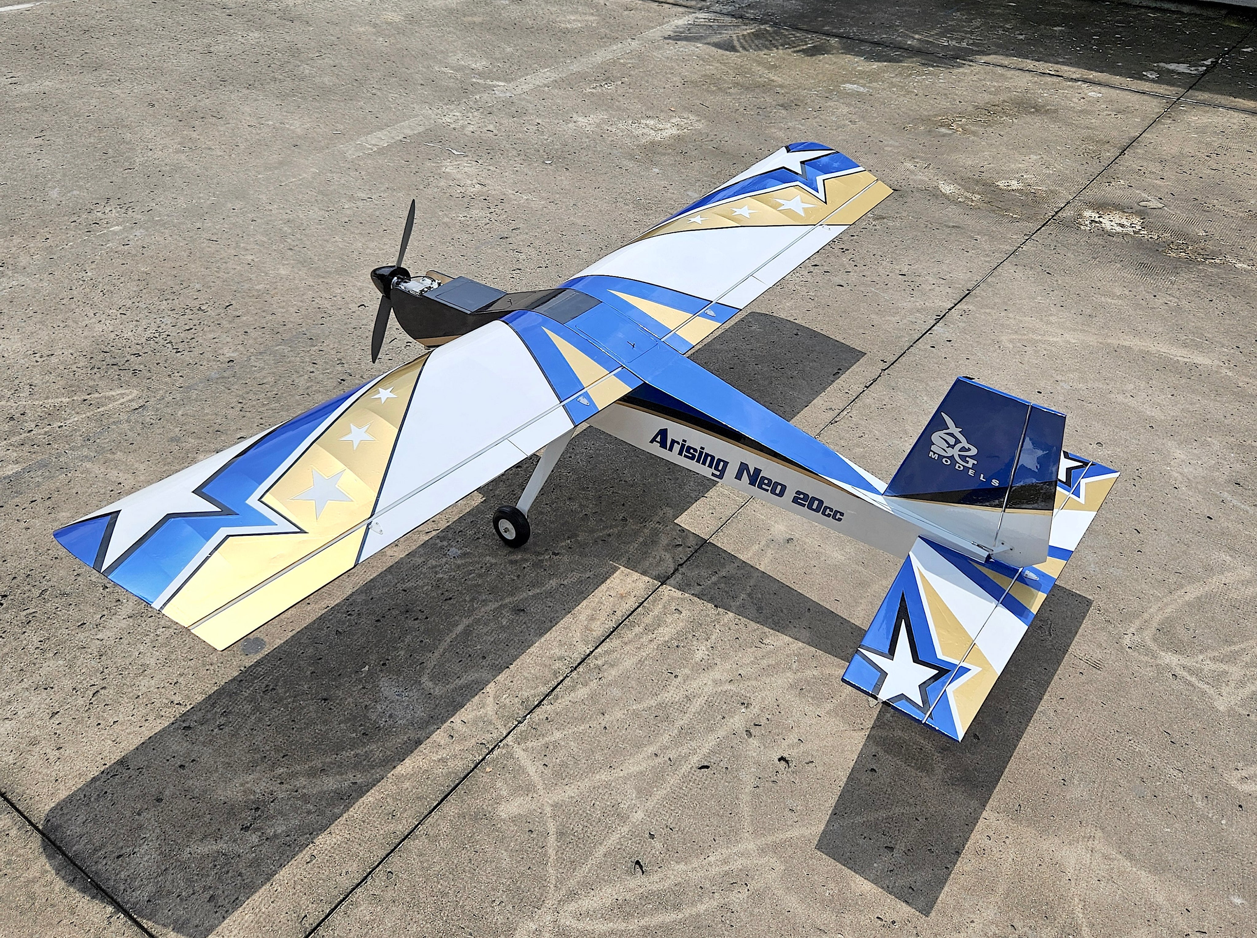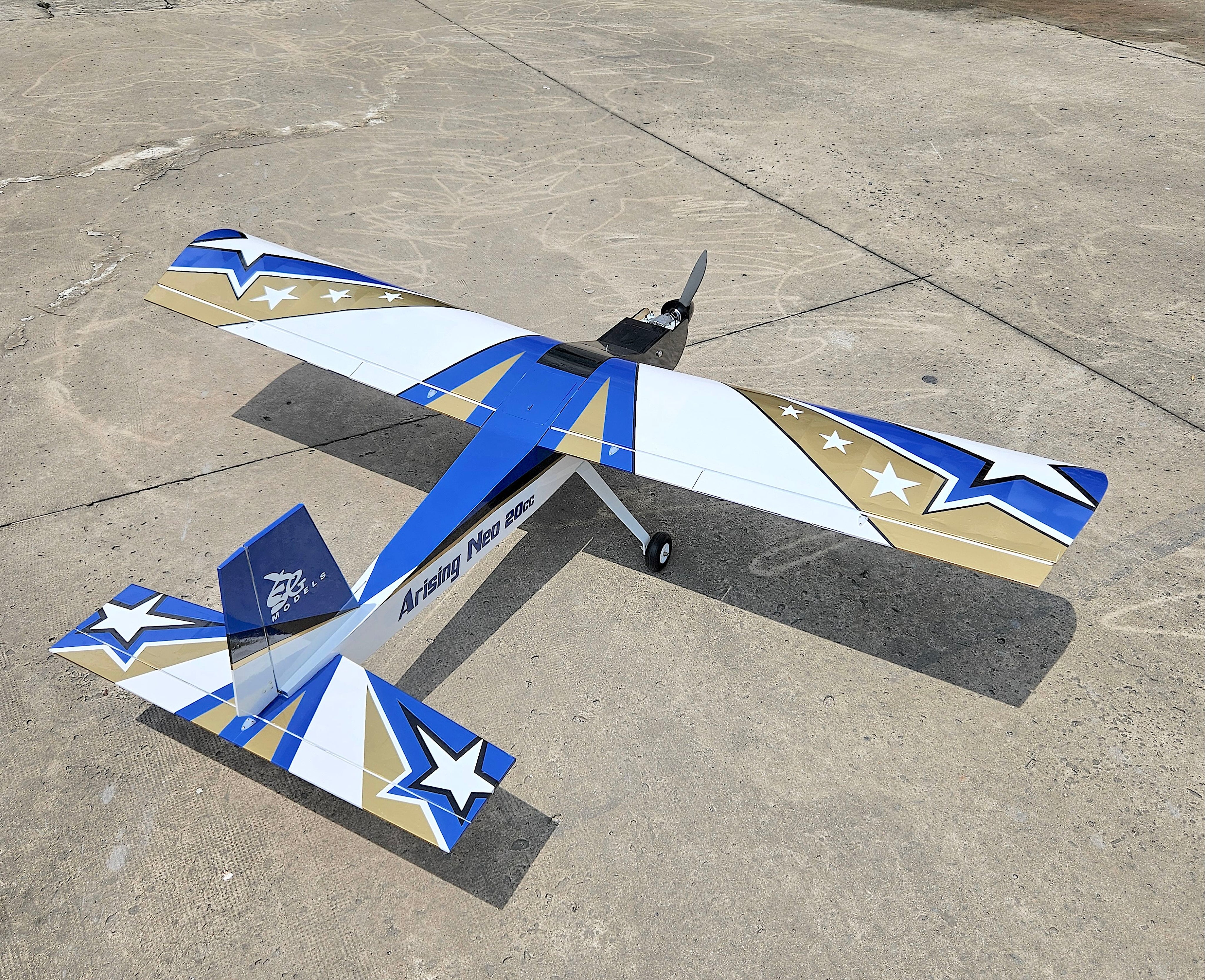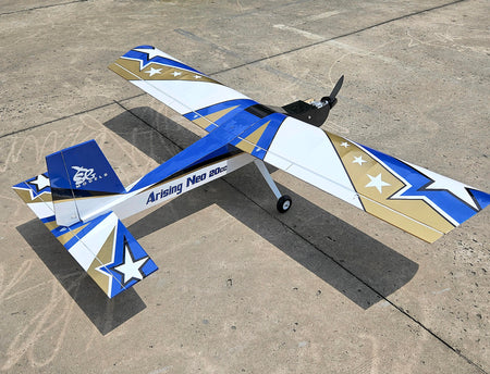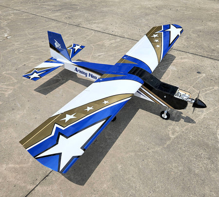 A perfect blend of performance, stability, and simplicity, this 74" high-wing trainer offers a truly relaxing and rewarding flying experience. Optimized for 20cc gas engines, this ARF (Almost Ready to Fly) model combines modern convenience with cost-effective operation. Its lightweight balsa and plywood construction delivers a strong yet agile airframe, factory-covered in vivid heat-shrink film that ensures both visibility and style in the air. With its generous wing area and semi-symmetrical airfoil, the Arising Neo provides smooth, self-correcting flight characteristics that make it ideal for learning, slow approaches, and relaxed cruising.