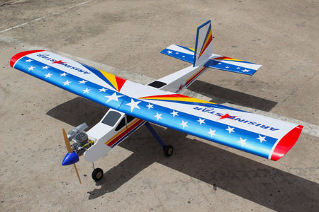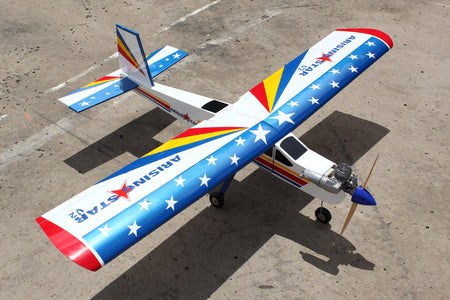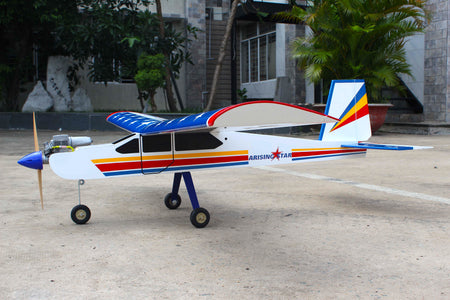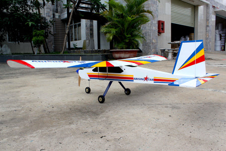 The Arising Star is designed from the ground up with the beginner flyer in mind. It is a High-wing airplane that easy to fly and quick to assemble. The airframe is conventionally built using balsa, plywood and oracover to make it stronger and lighter than your average ARF. You will find that most of the work has been done for you already. The pushrods are pre-made to the correct lengths, the motor mount has been fitted and the CA hinges are pre-installed.