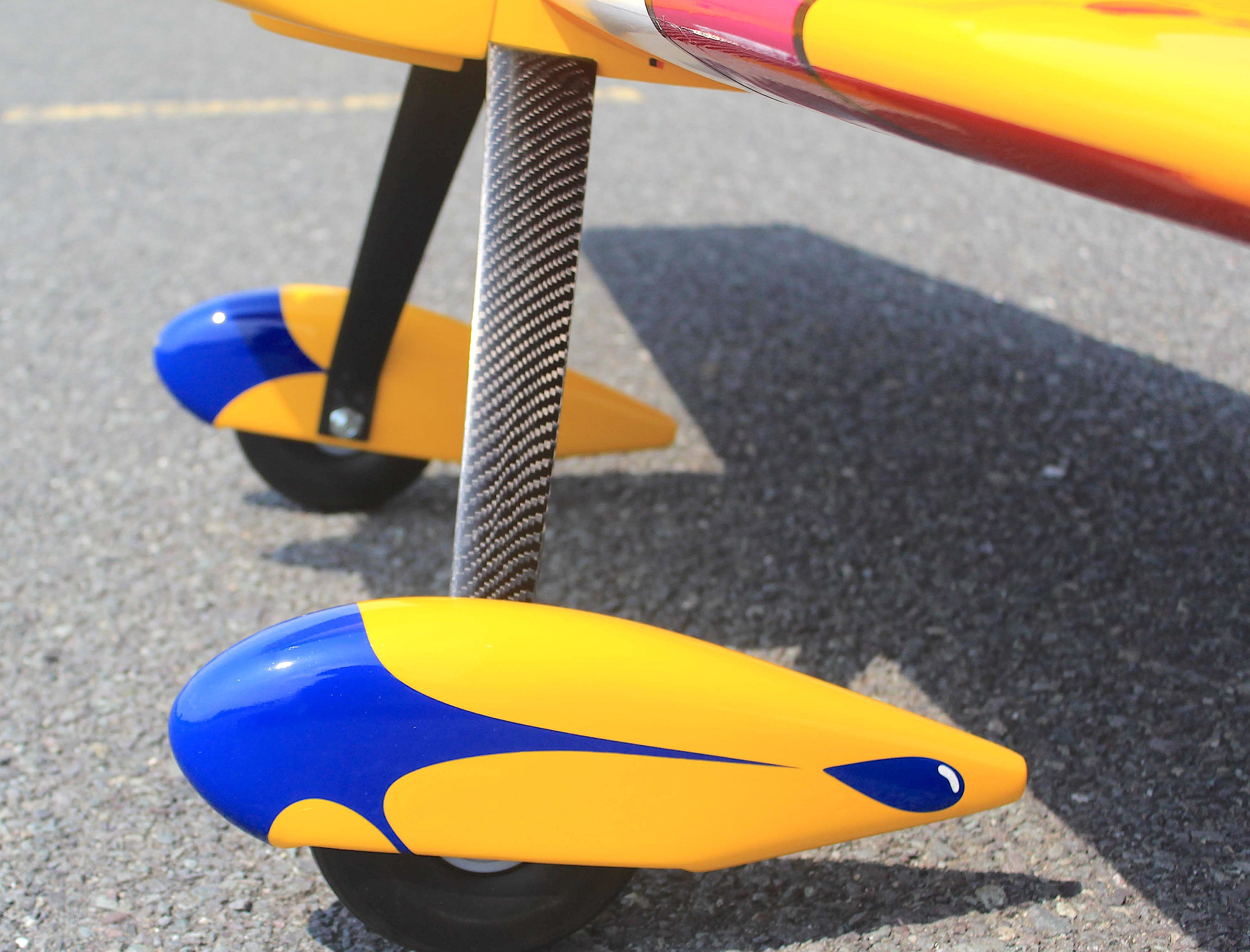 - CNC-machined aluminum tail gear reinforced with a carbon-fiber strut and a scale-style rubber wheel