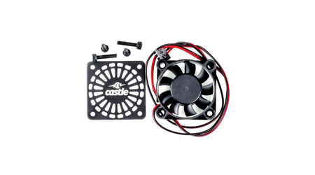 The 40mm fan assembly is fitted to a wide range of Castle ESCs including Phoenix Edge 160 HVf, Mamba XL2, Mamba XL X, and Talon HV 120. Includes the fan (w/wire), mounting plate, and four (4) mounting screws.