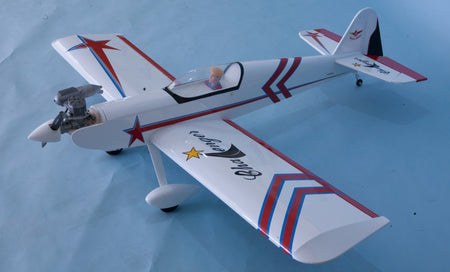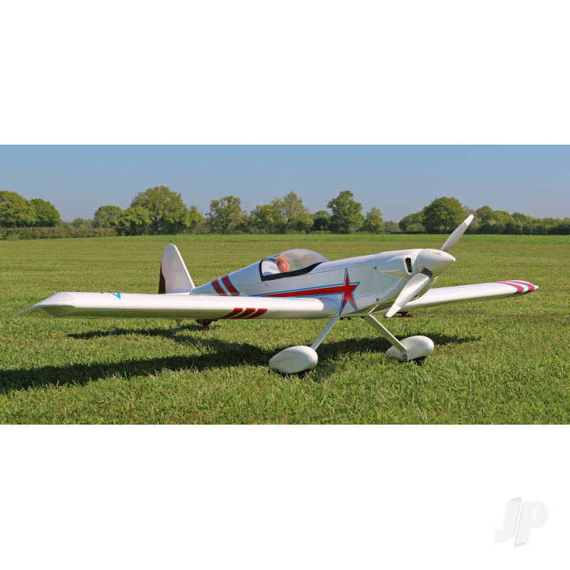 In the air you'll find a friendly and predictable machine that'll happily cruise around while delivering all the standard aerobatic maneuvers when required. The wide speed range means slowing down for landing is straightforward.