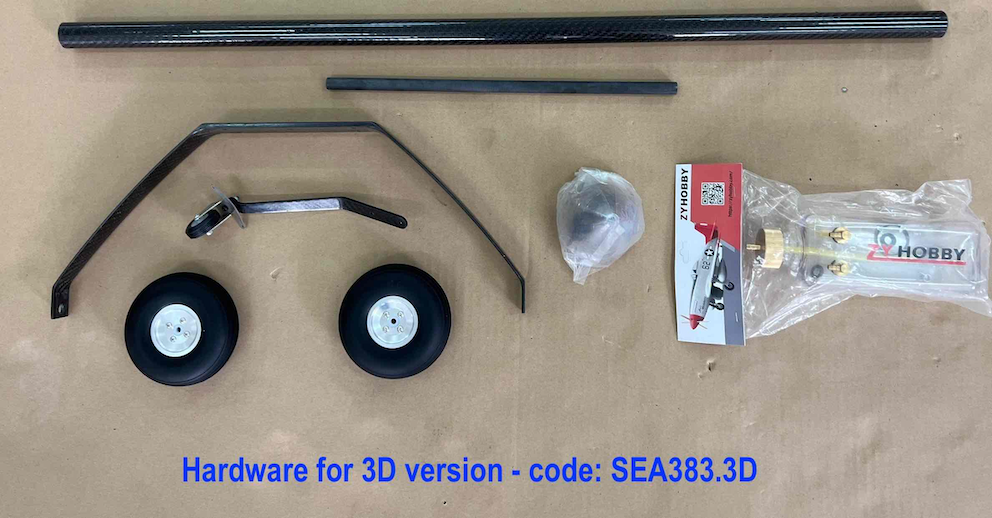 - Complete air frame with accessories: such as carbon fiber main undercarriage, carbon fiber tail-gear assembly and wing-tubes 25mm and 12mm for Elevator