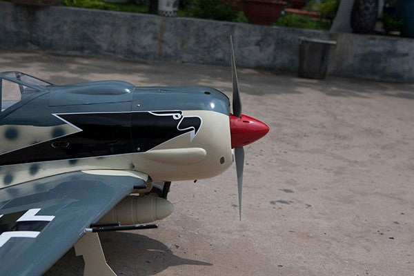 5. Pivot & Round Hinges Pinned instead of CA hinges. 6. Fiberglass control horns for flaps. 7. New Realistic gradated camouflage A-5 matte finished, bigger pilot fugure and seat behind the pilot.