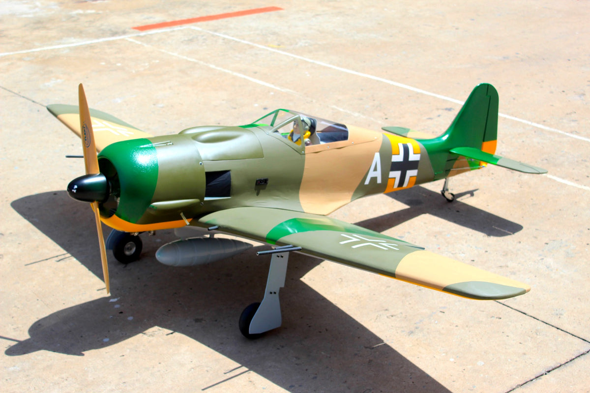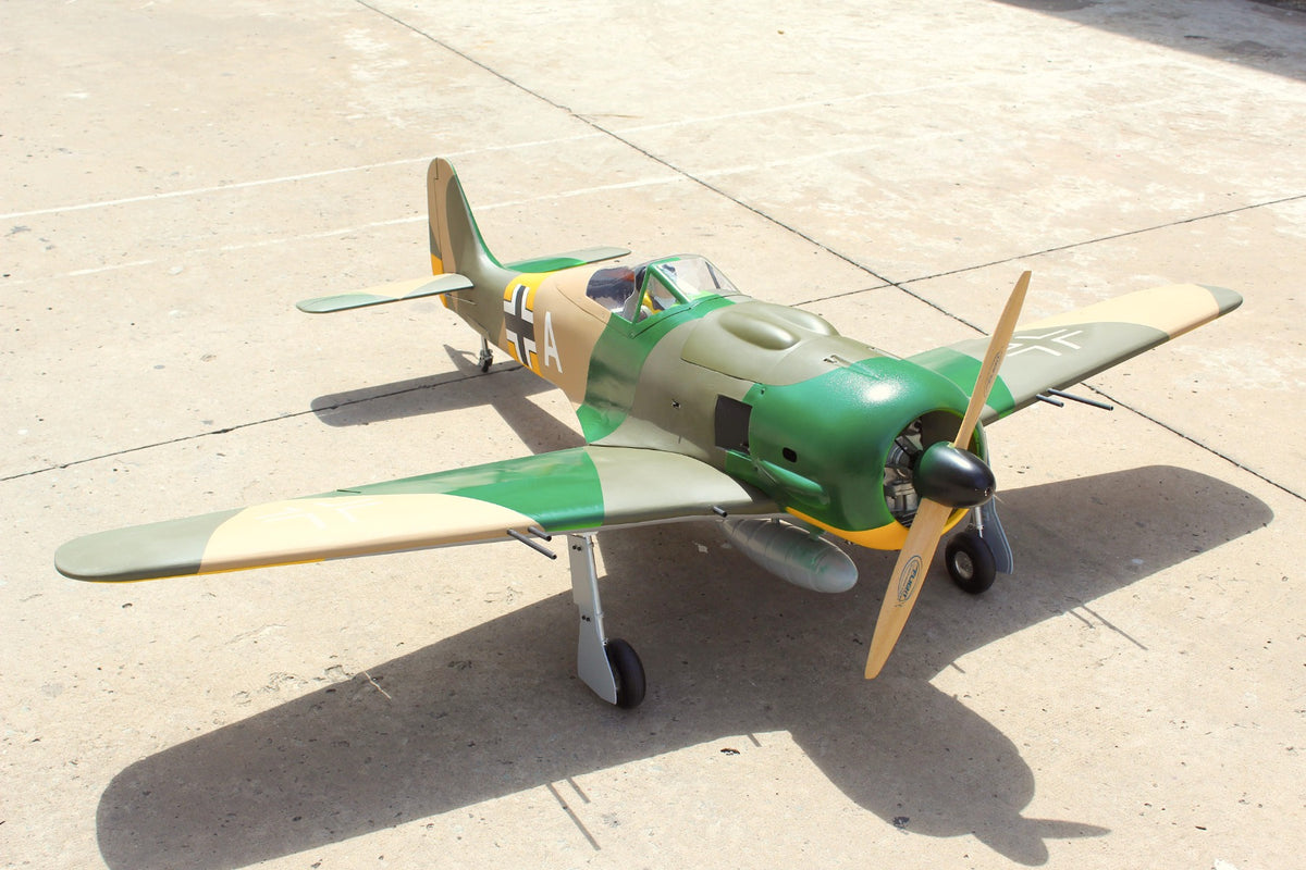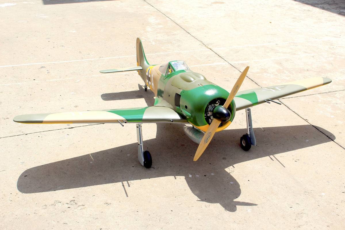 If any German front line fighter of the Second World War had the ability to strike fear into the hearts of allied pilots then the Fw190 was surely it. Superior to the Spitfire V in all but its turn radius it wasn’t until the introduction of Supermarine’s Mk.IX in 1942 that the tables could be turned. Even so the 190 remained a thorn in the RAF’s side for some considerable time and earned long-term respect, not least from those who flew it. So, what better model to pair with Seagull’s new 86” Spitfire than this hugely evocative 80” span Luftwaffe legend? Can you see what we’re doing here? Yes, you’ve got it – grab a friend, buy one of each and prepare for some 1/5-scale tail chase action. Beautifully matched in both era and performance the Fw190 is the perfect adversary for the Spit and an obvious choice for anyone with a large-scale Axis fighter on their wish list.