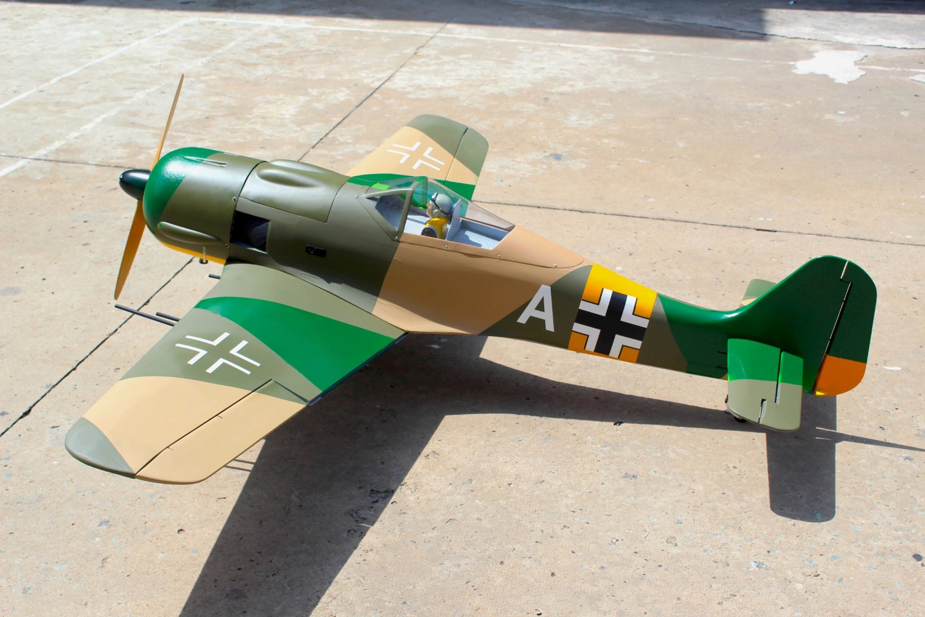 5. Pivot & Round Hinges Pinned instead of CA hinges. 6. Fiberglass control horns for flaps. 7. New Realistic gradated camouflage A-5 matte finished, bigger pilot fugure and seat behind the pilot.