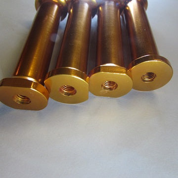 Anodized aluminum has a 5MM thread for the bolt to attach to Length is 2.4" x .475".