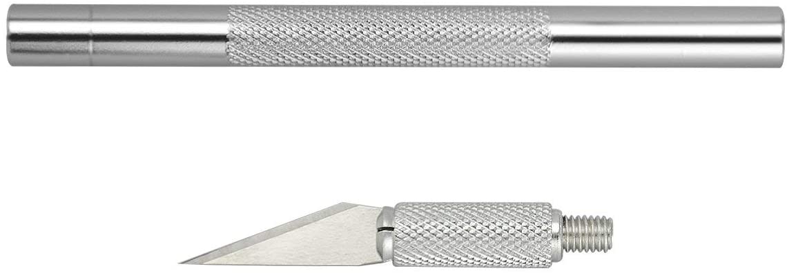 Round Aluminum Handle Hobby Knife w/Safety Cap - includes 5 size #11 blades 4 jaw machined aluminum chuck for secure blade positioning, includes 5 new standard #11 blades and a protective plastic cap for blade protection. Great for precision cutting and trimming for any project. Sturdy all-aluminum handle with anti-slip handle.