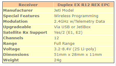 Jeti Duplex EX R12 REX Assist EPC 2.4GHz Receiver w/Telemetry, Stabilization, Variometer, G-Force