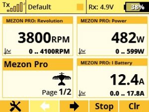 The Duplex EX telemetry system in the Mezon EVO lets you, monitor, in real-time the Amperage (Amp), Voltage (V), and Capacity (mAh) consumed by the battery, ESC even calculates Power (W) output of the system.