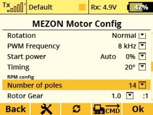 Through any of the Jeti Duplex 2.4GHz Transmitters, you can wirelessly monitor your ESC data and program custom alarm conditions in real-time. Make sure that in the Devices folder of your transmitter you have a configuration file "Mezon EVO.bin".
