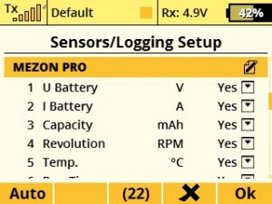 Through any of the Jeti Duplex 2.4GHz Transmitters, you can wirelessly monitor your ESC data and program custom alarm conditions in real time. Make sure that in the Devices folder of your transmitter, you have a configuration file "Mezon EVO.bin".