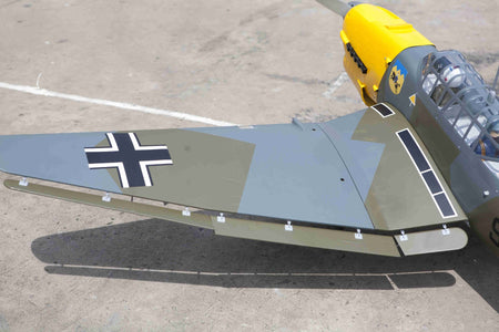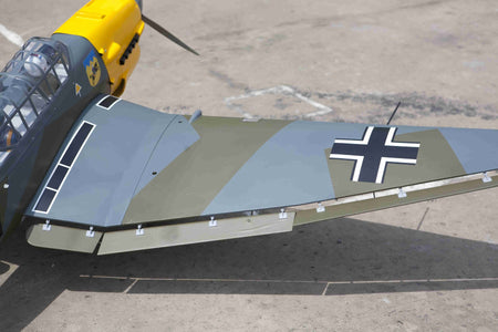 The famous German WW2 dive bomber has been produced this year in giant-scale by Seagull Models. They have not failed to impress us once again with remarkable models like this JU-87 Stuka Giant Scale 40-50cc with a wingspan of 2286mm, Seagull's version of this legend shares an amazing presence with all its unique details like dive brakes, semi-floating flaps, and ailerons, dive siren, tail bracing, balanced elevator detail, glasshouse cockpit with a rear machine gun, and so much more. Like all other Seagull models, it is wrapped with the Oracover and suitable for 38-50cc engines. Beautifully produced and finished with superb flying characteristics, this model is highly desirable and will definitely be at the center of attention.