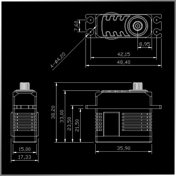 Maximum working torque(7.4V):15.2kg.cm(211.12oz/in)