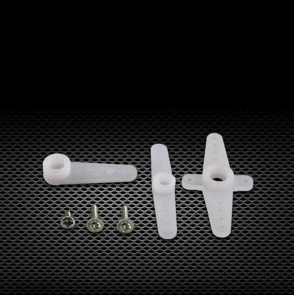 The spline on this servo is micro (4MM) and fits the provided servo arms.