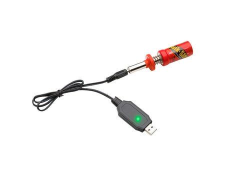 The Du-Bro Kwik Start Glo-Plug Igniter is the economical, yet full feature, answer to convenient engine starting. With its lock-on design, it fits both 2 and 4-cycle glow plugs and has a built-in Sanyo Sub-C NiCd cell. Available with standard or an extra long shaft for reaching inside deep cowls. Charger included.