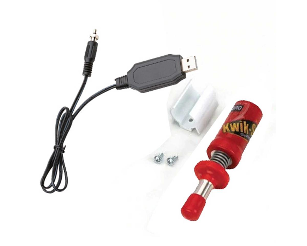 Kwik-Start securely mounts on glow plug for starting engines. Comes complete with Kwik-Mount Storage Klip and charger. Works with NORVEL Freedom XL and 7L glow plugs and all standard glow plugs.