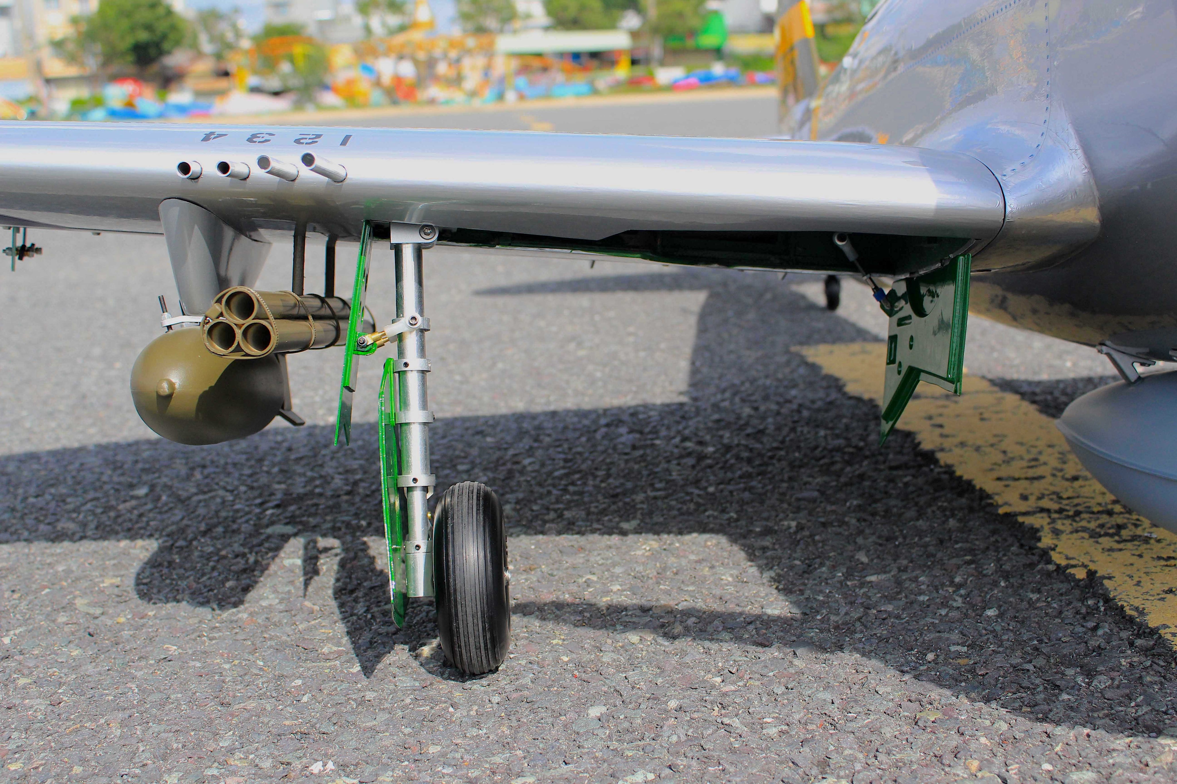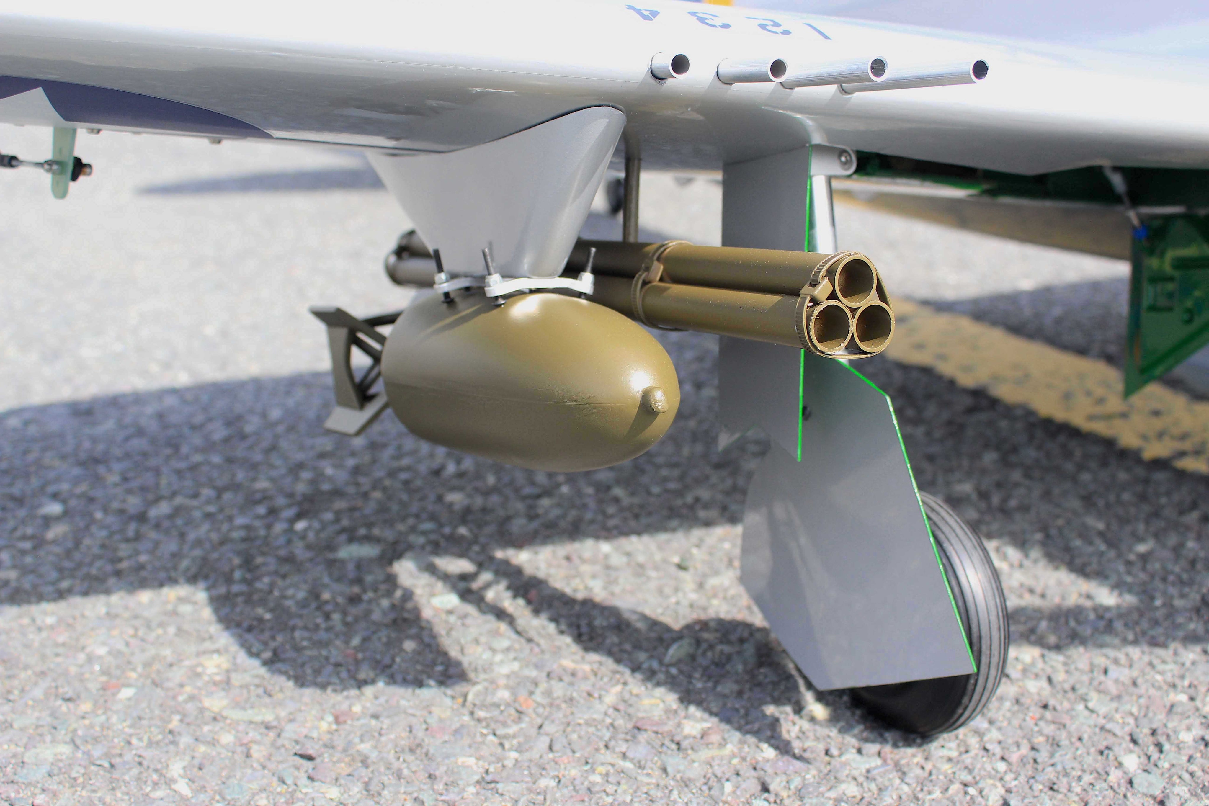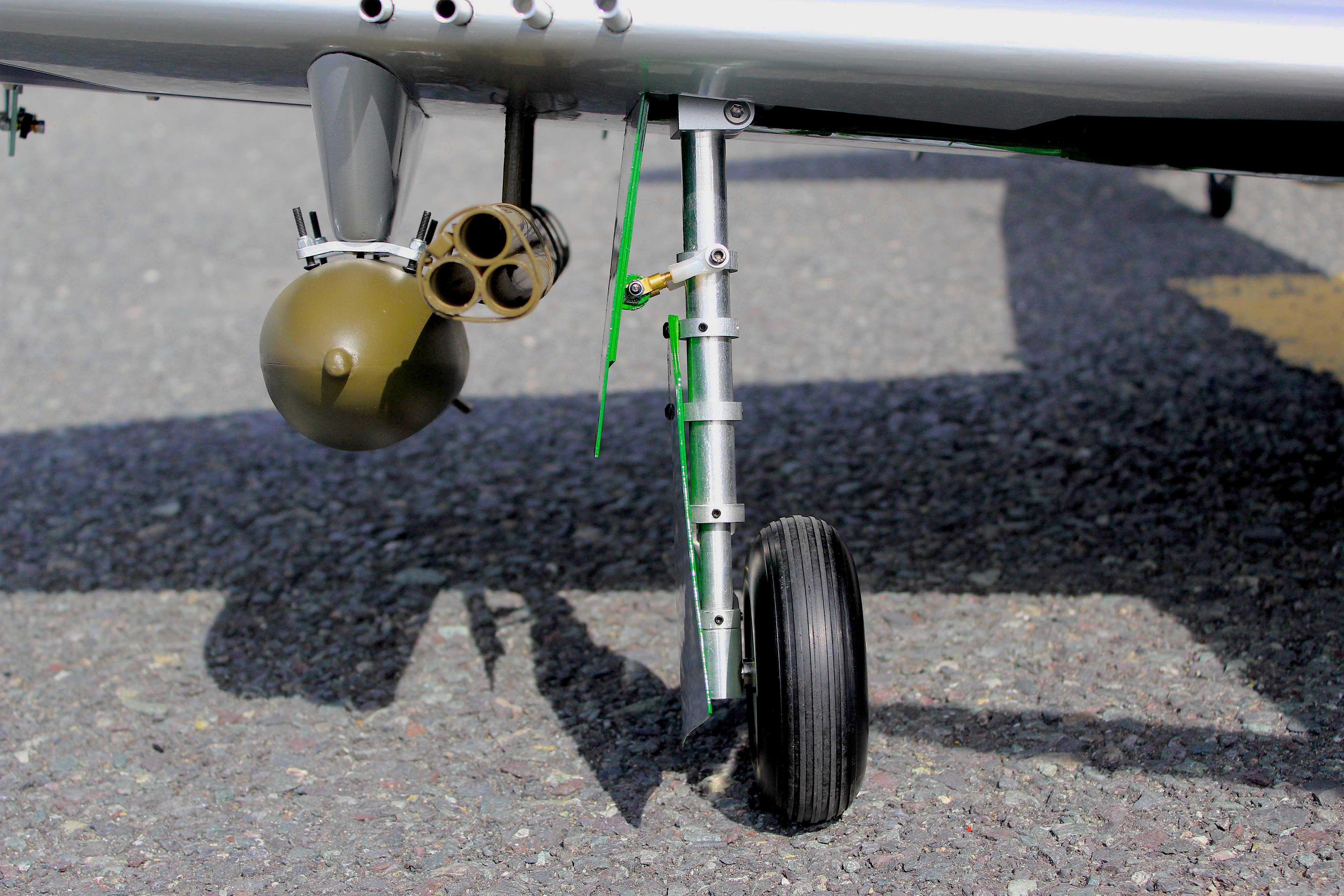 Wing-mounted bombs.