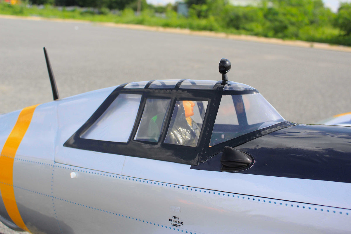 A close look at this new 80” span eye-catcher will tell you all you need to know about Seagull’s commitment to quality and accuracy. Sporting perfect lines, an authentic matt-finish color scheme, and more scale detail than you can comfortably shake a stick at – not to mention a fully furnished cockpit – this is a model that will draw a crowd wherever it goes. But that's just the half of it; good, stable, gun platform flying characteristics, Seagull's renowned build quality, and the convenience of a large top deck access hatch makes it a must-have model for fighter fans with a spare 50cc - 61cc engine kicking around.