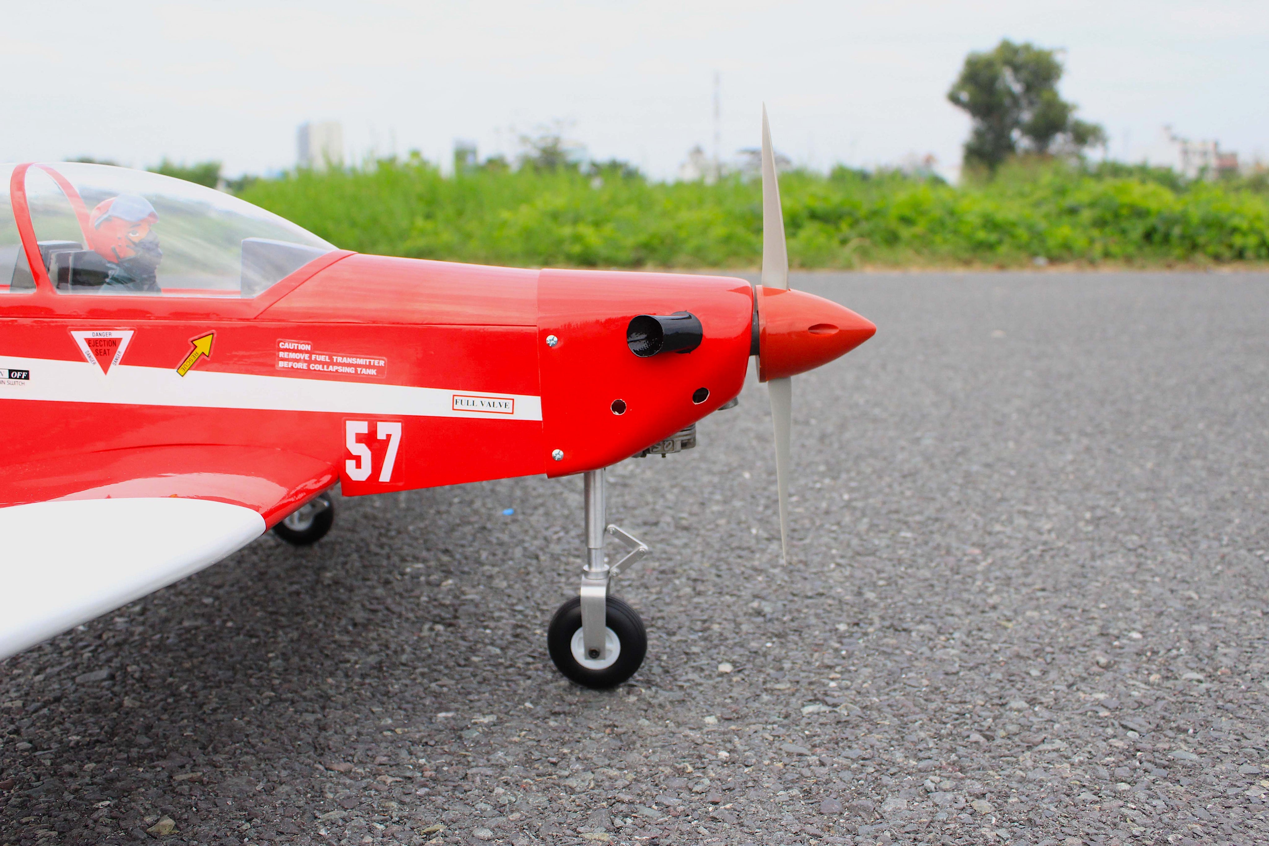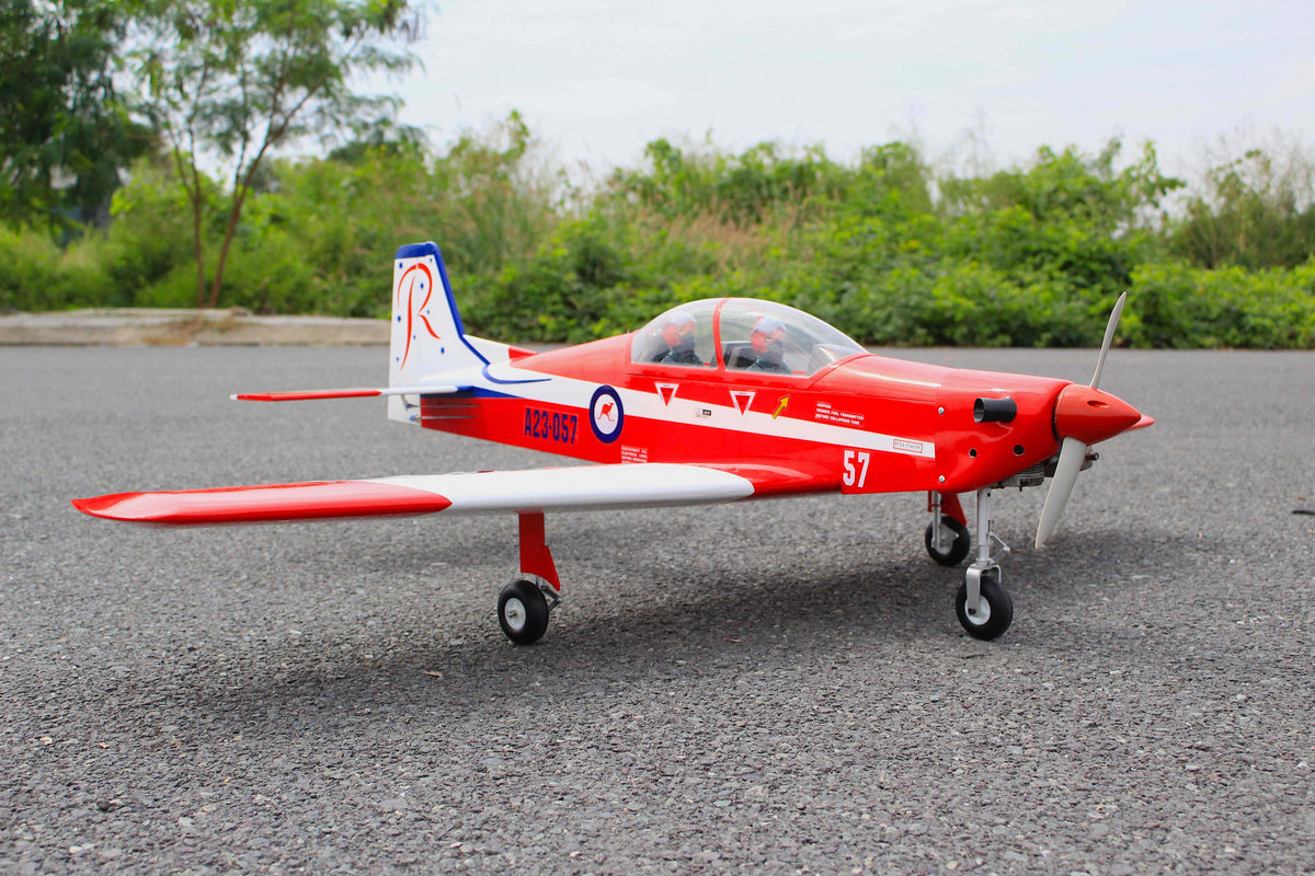 PC-9 Pilatus is the ideal sport aerobat, combining first-class flight characteristics with easy assembly. Features glow and electric power compatibility, high-quality film covering, CNC struts landing gear, two pilot figures. Compatible with glow, gasoline and electric power conversion.