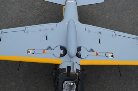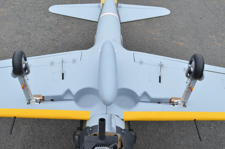 - Includes a detailed cockpit kit, replica radial engine, fiberglass wheel doors, fiberglass cowl, aluminum scale zero spinner, aluminum hub 4″ Main Wheels/Tires, upgraded fuel tank, center drop tank, and more!