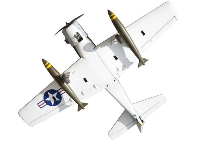 Seagull has captured the look and history of the legendary Douglas Skyraider in this exciting semi-scale ARF, suitable for Glow, Gas, or Electric power. The airframe is conventional built balsa and plywood construction, yet a modern laser-cut design allows the airplane to be kept light. You will find that most of the work has been done for you. The pushrods are pre-made to the correct lengths and the hinges are pre-installed. Includes extra scale features such as wing guns, drop tanks, antenna, and operating navigation lights. Includes fixed landing gear - using same mounting as optional electric rotating retracts.