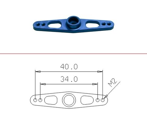 Lightweight aluminum full servo arm for rudder applications.