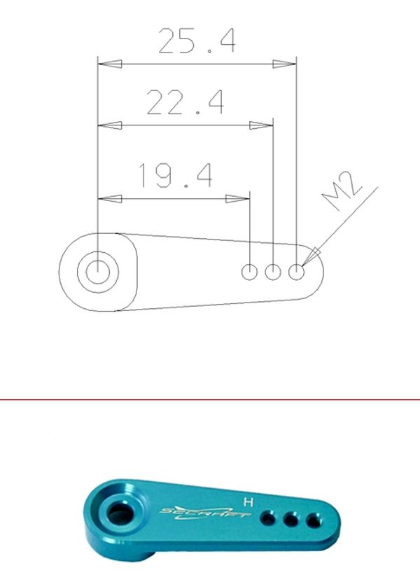 Servo Arm, 1" x 2mm Hitec/24T/Blue, V1 (Secraft)
