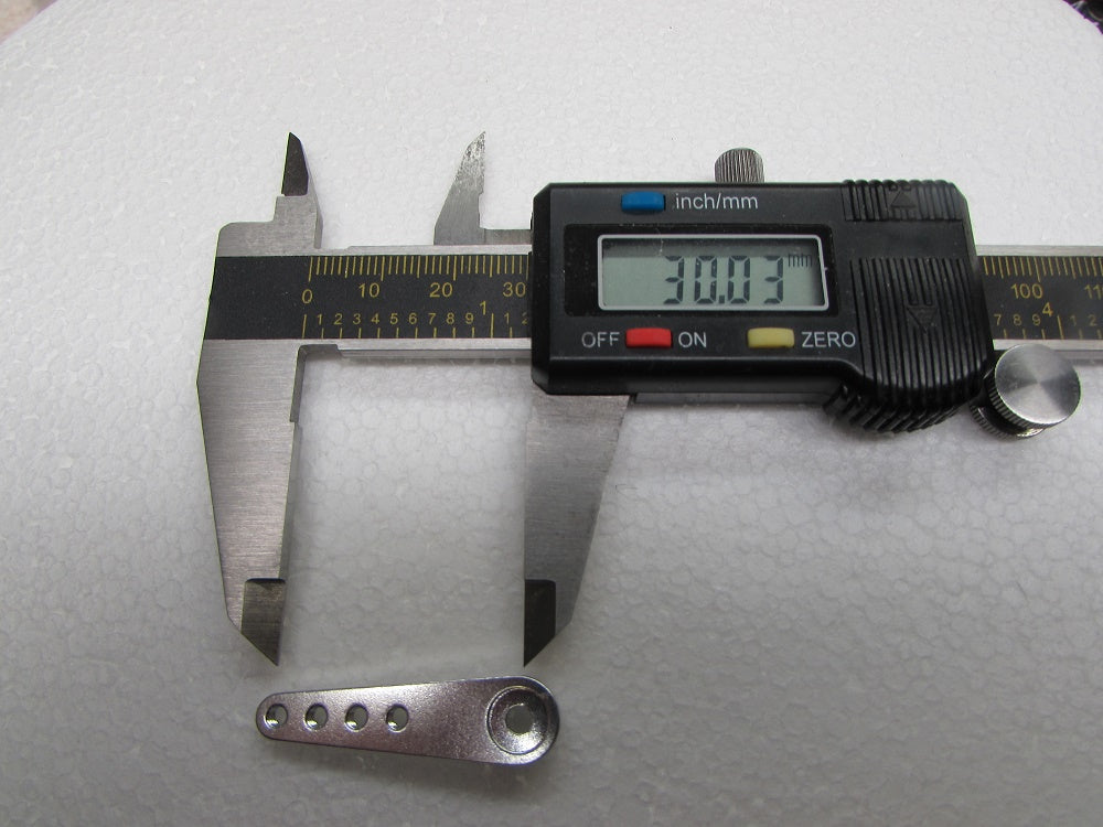 This servo arm is drilled to accommodate the following throws: 14MM, 19mm,24mm, and 30mm