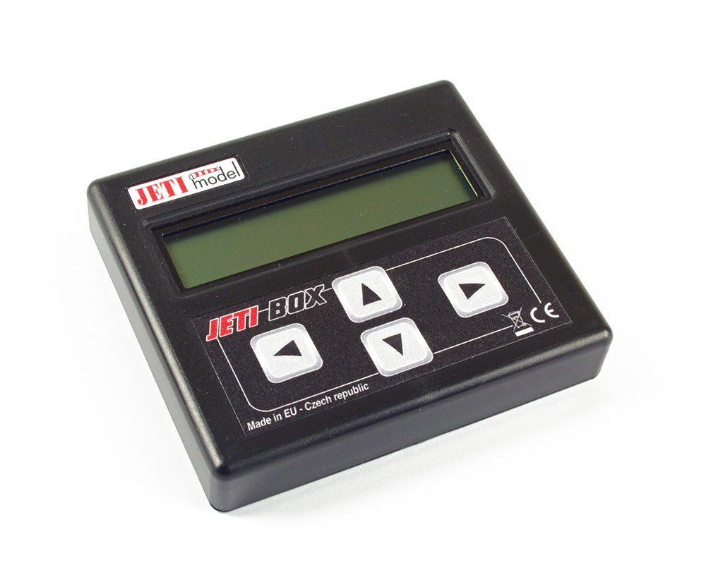 Jeti Spin Programming Box allows you to custom program your SPIN & Mezon controller and Jeti Duplex Sensors. Provides a readout screen for the data that is stored in the controller after a flight.