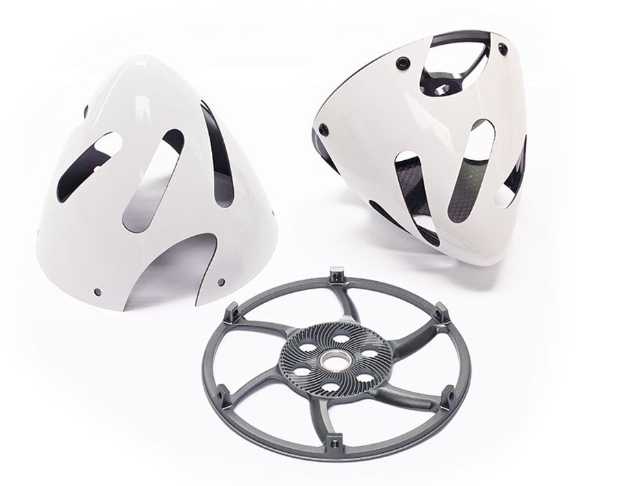 Falcon Carbon Fiber spinners incorporate pre-cut slots for the propeller blades, and specially designed machine cut slots for direct intake of the cooling air. The backplate is an engineering marvel, anodized, super light with support arms to help create additional airflow.
